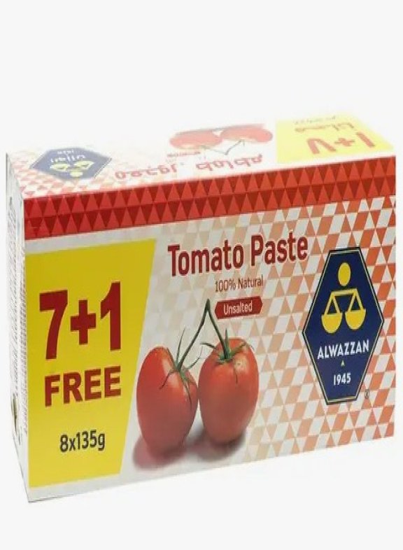 معجون الطماطم من الوزان، يأتي في 8 عبوات، كل عبوة تحتوي على 135 غرام.